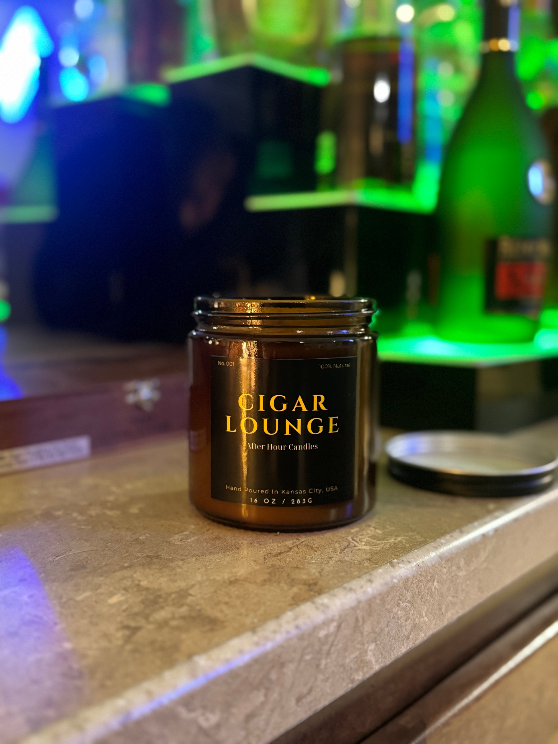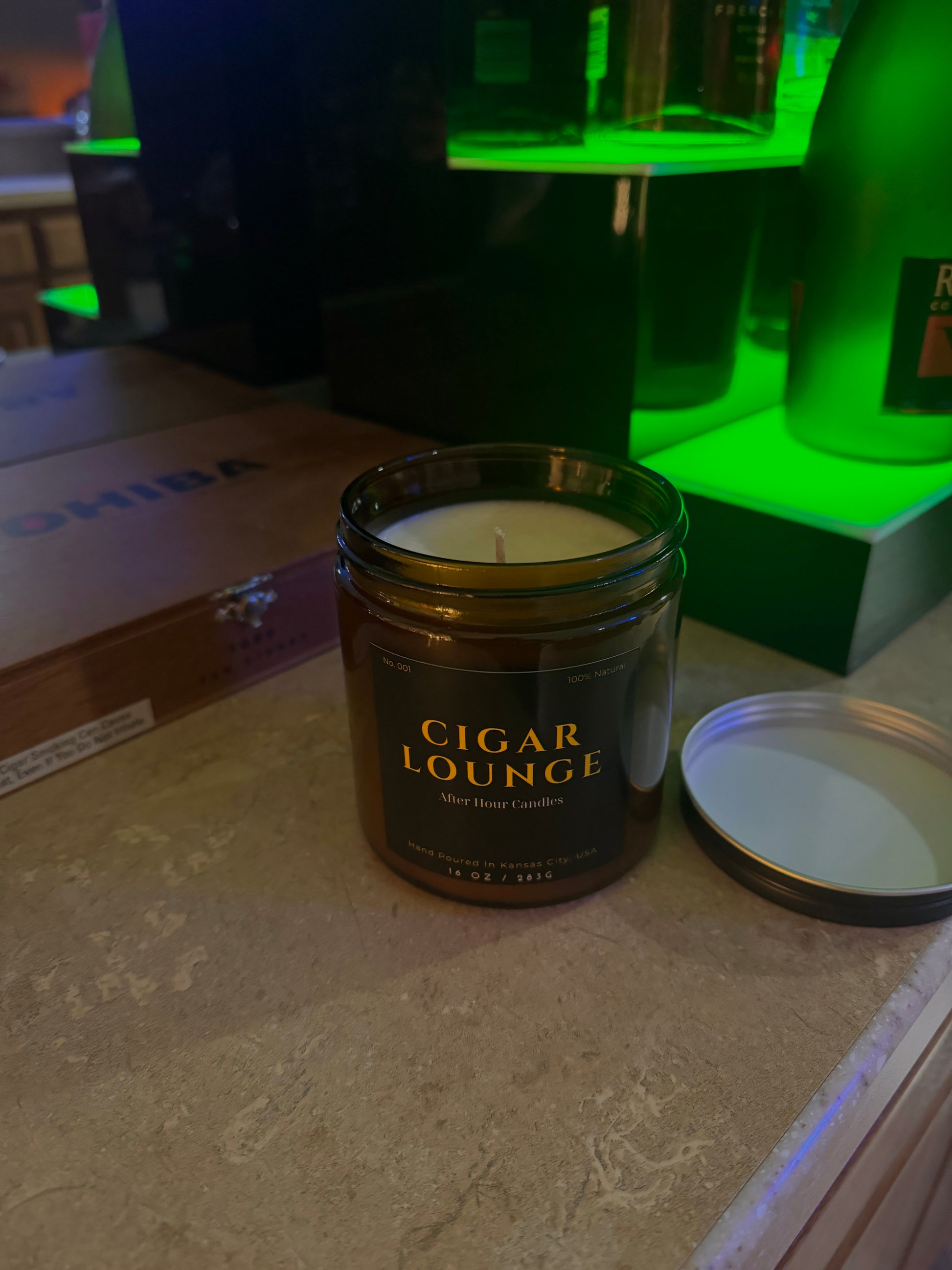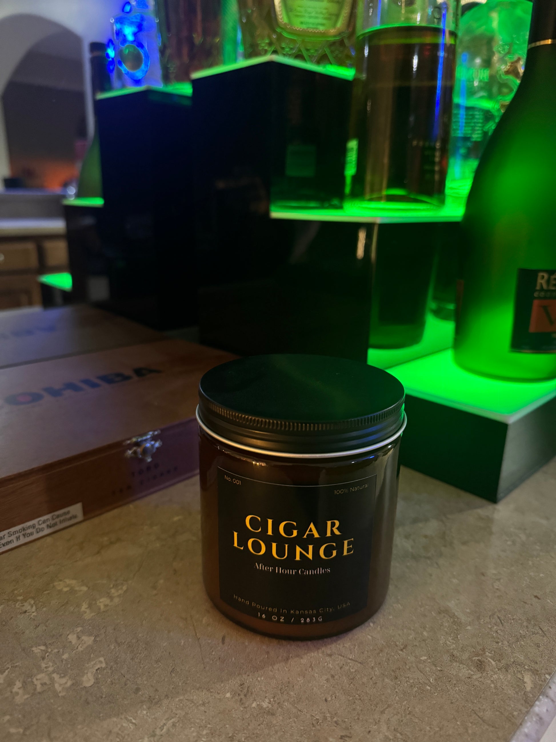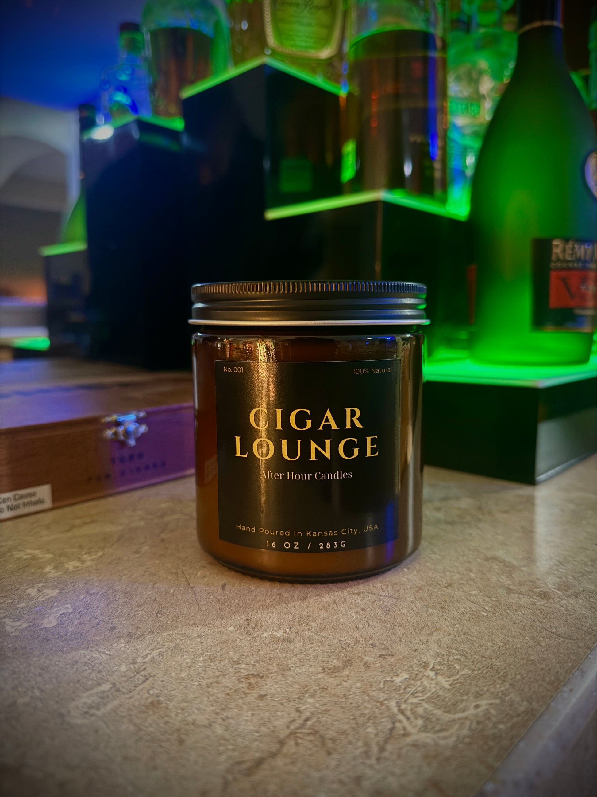 16 .oz luxury candle with a fragrance that resembles a man cave vibe